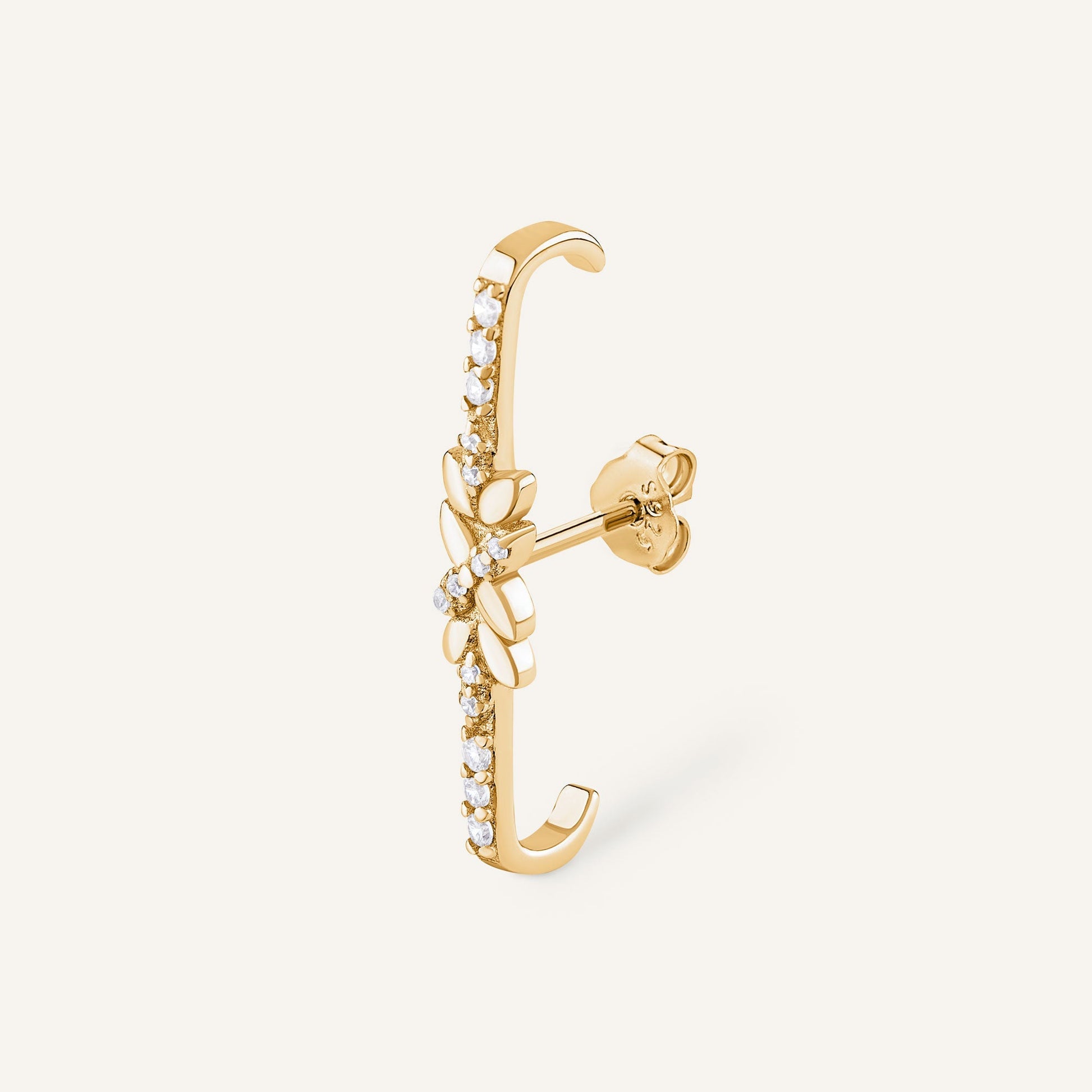 Fine boucle en argent 925 doré à l’or 24 carats, sertie de pierres de zirconium.