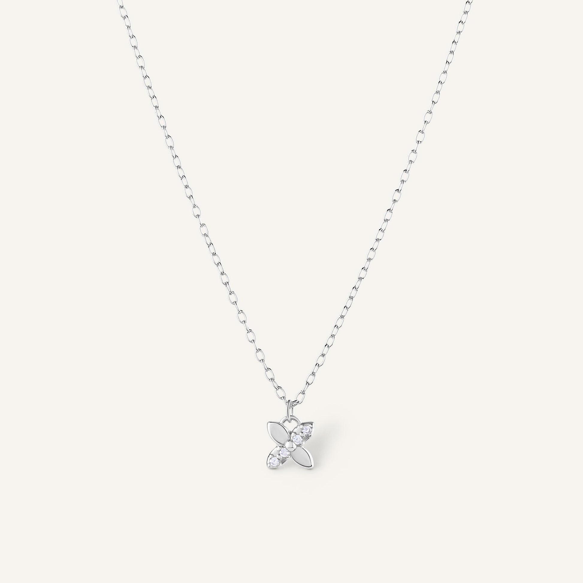 Collier en argent 925 doré à l’or 24 carats, orné d’un pendentif en forme florale serti de pierres de zirconium.